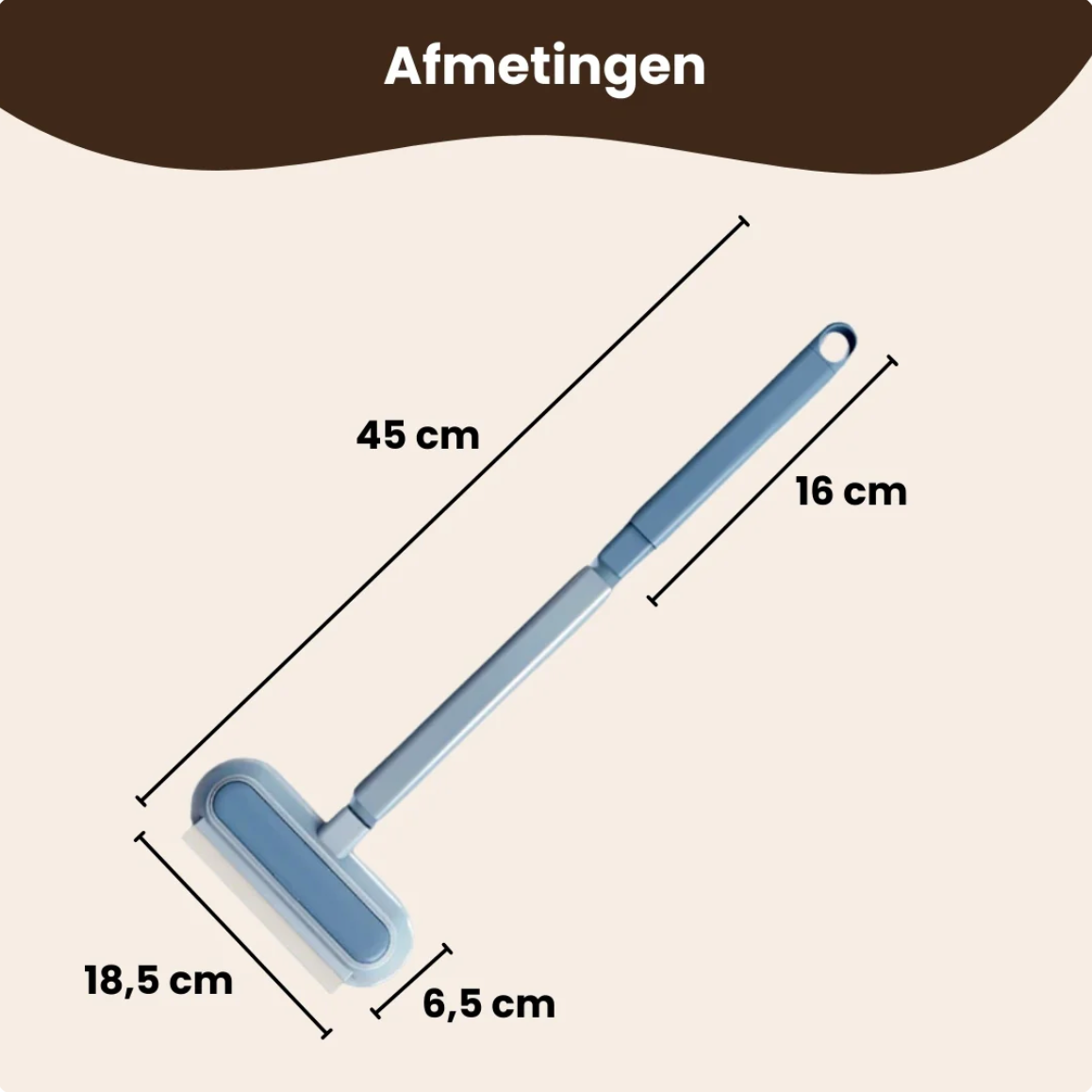 📏 Slim & Comfortabel – 45cm Ergonomisch Handvat